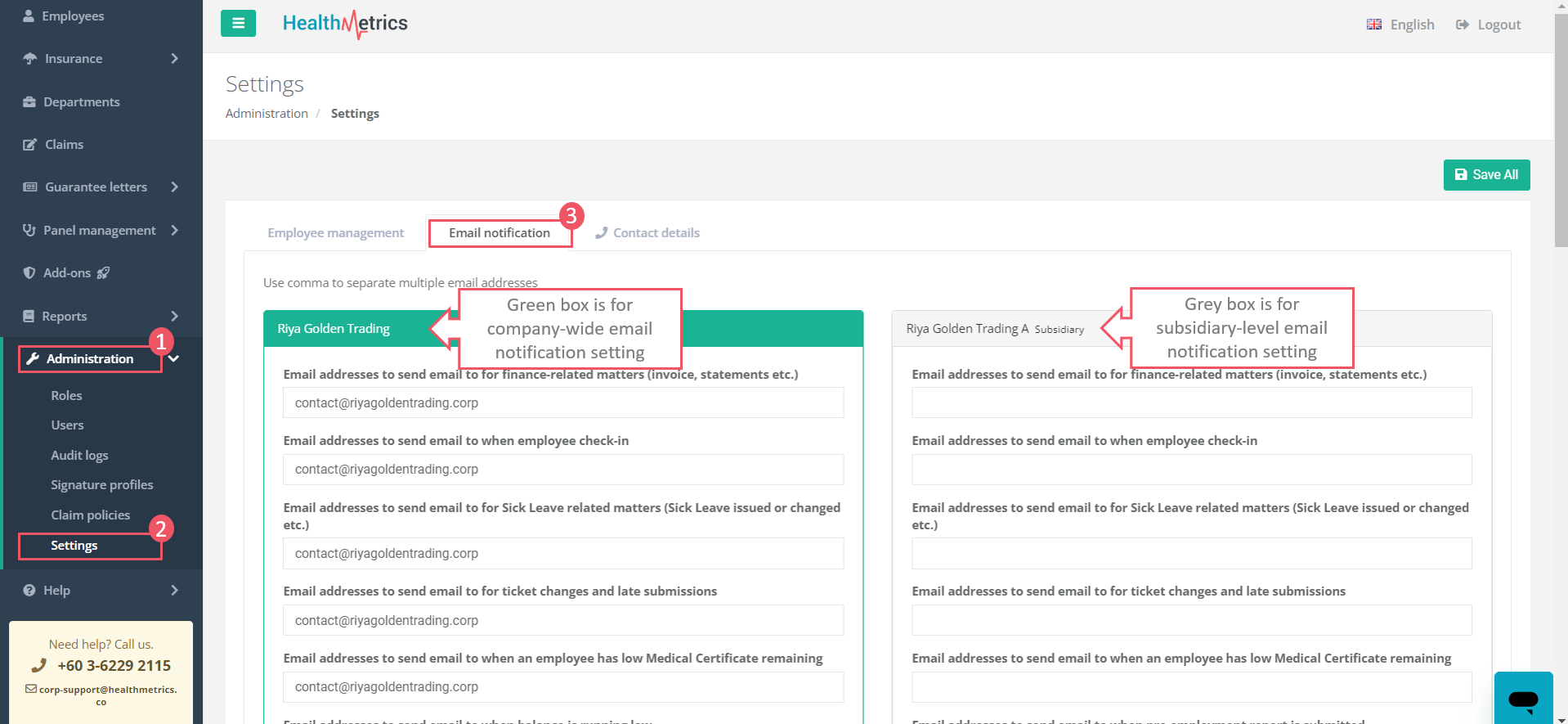 Set up email notifications in your HealthMetrics portal to ensure you're not missing out on automatic invoices, low corporate balance notifications, employee sick leave info and many more!