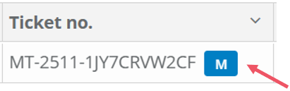 Once you have issued the ticket, you will see the submitted ticket in your Tickets table with the tag "M" which means it was a manual ticket you have created.
