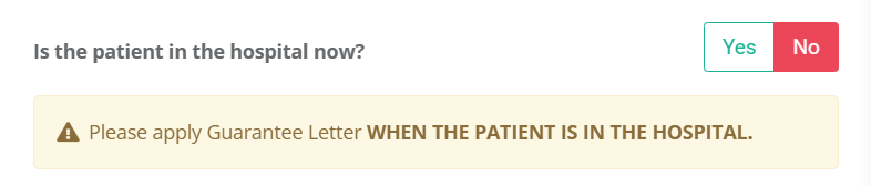 Note: You can only apply for a Guarantee Letter when the patient is physically at the hospital. Otherwise, the portal will display a prompt.