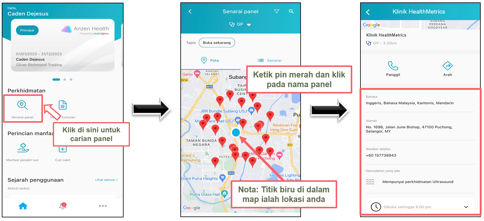 Mencari Panel Enya 17 November 2023 02:49 Terkemas kini Ikut And hanya perlu ketik pada Senarai Panel untuk mencari panel berdekatan. Artikel berkaitan Aliran Proses Untuk Melawat Panel Pesakit Luar (GP/Pergigian/Optik) Melihat Manfaat & Sejarah Penggunaan Anda Bagaimanakah cara saya mencari Panel HealthMetrics? Memuat turun Aplikasi Mudah Alih HealthMetrics Aliran Proses Melawat Panel Pesakit Luar (Doktor Pakar) Komen 0 komen Sila daftar masuk untuk meninggalkan komen.