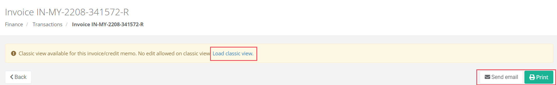 i. Muatkan Paparan Klasik: Untuk melihat invois daripada antara muka pengguna kami yang terdahulu.