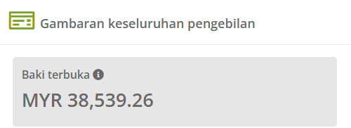 Baki Terbuka: Menandakan semua amaun invois/bil bagi perkhidmatan yang telah diberikan oleh panel. Invois dibilkan dua kali sebulan (pertengahan dan akhir bulan) dan gabungan semua invois yang belum dibayar akan jatuh di bawah baki terbuka.