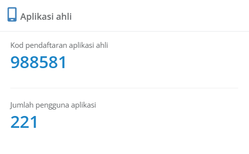 6. Aplikasi Ahli termasuk kod pendaftaran unik 6 digit yang diperlukan untuk pendaftaran akaun dalam Aplikasi Pekerja HealthMetrics manakala jumlah pengguna aplikasi menunjukkan bilangan pekerja yang telah mendaftar akaun HealthMetrics mereka melalui Aplikasi Pekerja HealthMetrics.